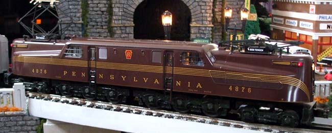 GG1s were a common sight when I was growing up in Philadelphia. In the 1940s, '50s and '60s, the Pennsylvania Railroad ran 'clockers' - hourly trains (22 per day, over 150 per week) between Philadelphia and New York - single GG1 electric locomotives carrying eight to ten passenger cars. Watching the Williams model run on my layout brings back pleasant memories of seeing full size GG1s in action during their prime.